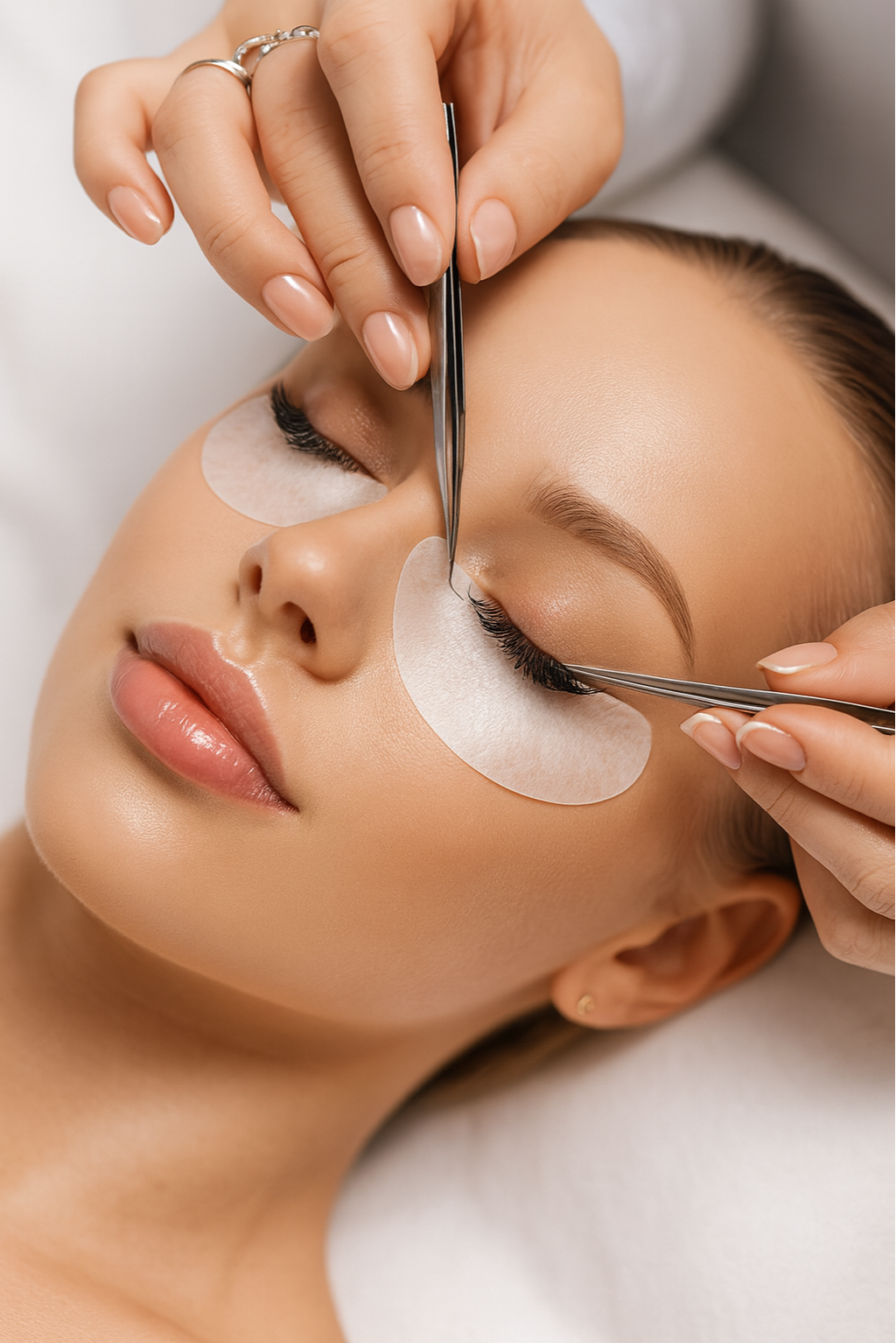 Bei der Light Volume Methode werden feine, besonders leichte Wimpern in kleinen Fächerbündeln (2–4 Wimpern pro natürlicher Wimper) appliziert. Dadurch entsteht ein weicher, voluminöser Look, der dennoch natürlich wirkt. Diese Technik verleiht mehr Fülle und Ausdruck, ohne zu schwer oder künstlich zu erscheinen – ideal für alle, die sich einen sanften, glamourösen Effekt wünschen, der den Blick intensiv betont und gleichzeitig elegant bleibt.